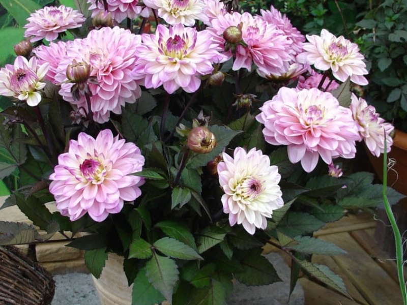 Георгина декоративная Гэллери Латур - это изысканное растение с нежно-розовыми цветками, которые радуют глаз в течение нескольких месяцев в году. Ее стебель достигает высоты до 45 см, а размер цветка составляет 10 см. Листья георгины имеют интересную форму и придают растению особый шарм.