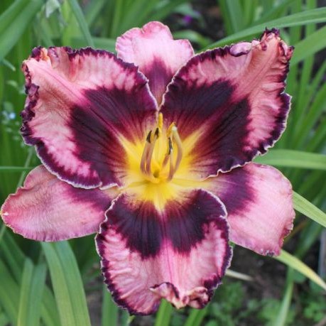 Окраска цветка : розово-лавандовая с фиолетовым глазом и желтым горлом