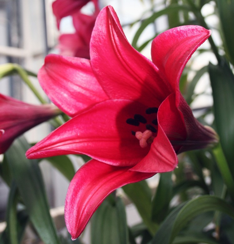 Саженцы и рассада лилии лонгифлорум Дивайн (Lilium) создают ощущение величественности. Об этом говорит и удлиненная трубчатая форма цветка, и яркая малиново-бордовая расцветка. Чистые, однородные лепестки, никаких полос, вкраплений и точек. Цветок компактно собран, не раскрываясь полностью к стеблю. Обладает приятным ненавязчивым ароматом.