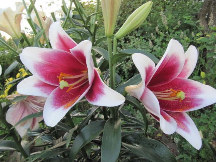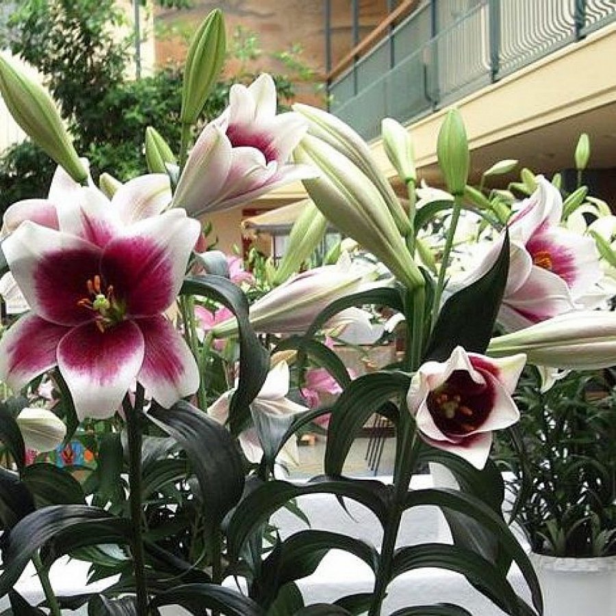 Саженцы и рассада Лилия лонгифлорум Цирано (Lilium longiflorum Cyrano) подходит для высадки в теплицах и открытом грунте. Стебли вырастают до 100 см, зелень светлая, глянцевая. Цветки в диаметре до 15 см с эффектной окраской. Лепестки очень широкие пурпурные от основания до середины, с переходом в белоснежный к кончикам. Сорт неприхотлив в уходе, на зиму требует укрытия, предпочитает хорошо дренированную рыхлую плодородную почву и солнечные места посадки с укрытием от ветра. Может выращиваться в горшках. Идеален для срезки и групповых посадок.