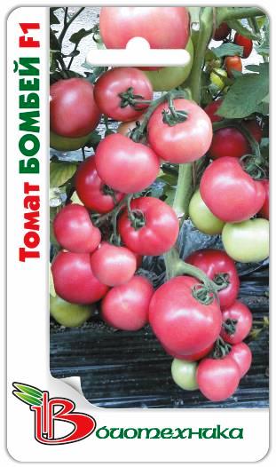 Семена томата "Томат Бомбей F1" (Tomat Bombej F1) быстро прорастают. Выращивать культуру нужно в защищенном грунте. Богатый урожай созревает спустя 95-105 дней после появления первых всходов. На сильнорослом кусте формируется несколько кистей, на каждой по 4-5 крупных плодов. Помидорки получаются плоско-округлыми, с гладкой и плотной кожицей. Плоды окрашены в розовый цвет, зеленое пятно у плодоножки отсуствует. Средняя масса варьируется от 250 до 350 грамм. Сорт устойчив к вершинной и корневой гнили, толерантен к альтернариозу. Используют плоды в свежем виде.