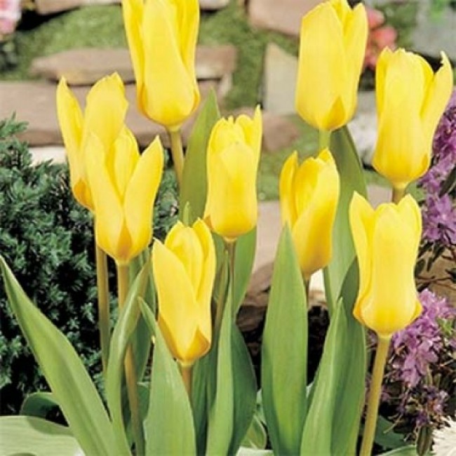 Тюльпан йеллоу эмпресс - это великолепное растение с жёлтыми цветками, которое порадует вас своим великолепием в мае и апреле. С его высотой до 40 см, этот тюльпан станет настоящим украшением вашего сада. Его травянистые листья и яркие цветы создадут неповторимый акцент в групповых или одиночных посадках.